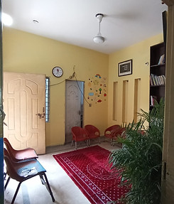 LSU volunteers did a phenomenal job in converting one of the corner of the room into a library. The volunteers completely transformed it and made it into a magical space for students at the school. Since the library is a reading corner, it has floor seating. The volunteers have done an exceptional job in decorating the space with wall charts, 3D hangings, and canvases. However, what makes it even more special is the inclusion of children's work as part of the decor. In addition to books, the library has toys, stationery, and games for students to sit together to read, learn, and create.